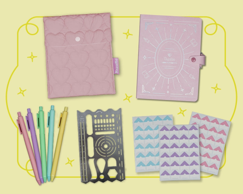 Si tratta di un astuccio speciale che contiene tutto l'occorrente per compilare e decorare i tuoi Tracker e Journal con stile, ovunque ti trovi nel mondo.