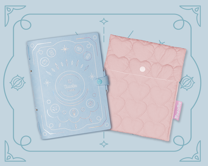 un astuccio speciale e morbidoso che contiene tutto l'occorrente per compilare e decorare i tuoi Tracker e Journal con stile, ovunque ti trovi nel mondo.