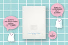 - 8 MINIATURE: o, in gergo, thumbnail, spazi piccoli che hanno le stesse proporzioni della pagina da disegno per fare delle prove di composizione in miniatura (nella versione LETTERING in ogni thumbnail trovi una griglia di composizione studiata ad hoc per ogni scritta!)