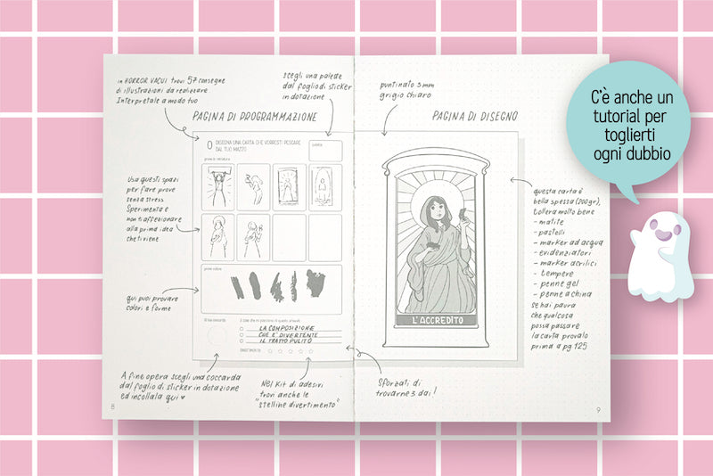 Vogliamo che HORROR VACUI sia un'esperienza creativa completa e appagante sotto più punti di vista, e che tu esca da ogni disegno con la sensazione non solo di aver superato un blocco, di aver imparato e di aver fatto il miglior lavoro possibile, ma anche con una migliore comprensione di te!