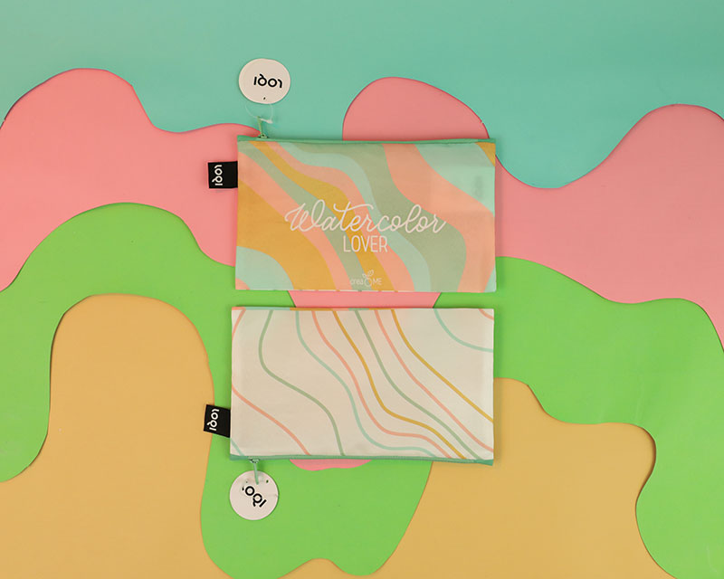- 1 mini zip pocket Loqi con grafica coordinata e lettering “Watercolor Lover”