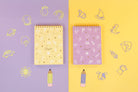 DOODLE DIARY è un quaderno A5 con spirale sul lato corto (così da non essere di impedimento alle persone mancine), con copertine cartonate con sensazione soft touch ed elementi in oro 3d, 140 pagine di esercizi guidati in carta 140 gr (perfette anche per i pennarelli!) divise in 4 capitoli con diverse finalità.