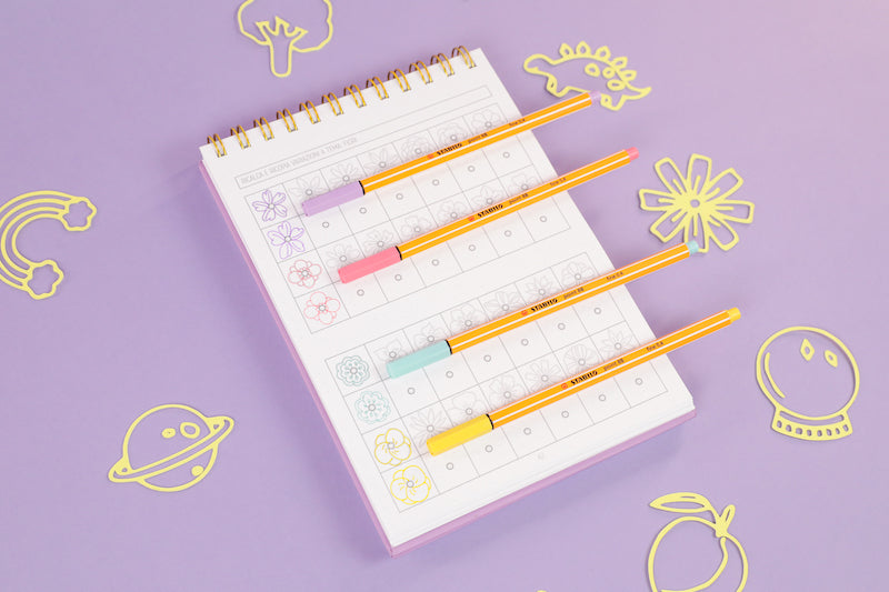 Completare il tuo diary con questi colori sarà bellissimo: ricalca, ricopia o colora! La punta rinforzata da 0,4 delle STABILO point 88 è perfetta per ogni dettaglio!
