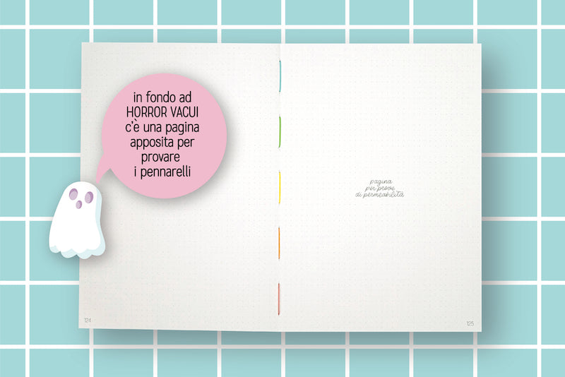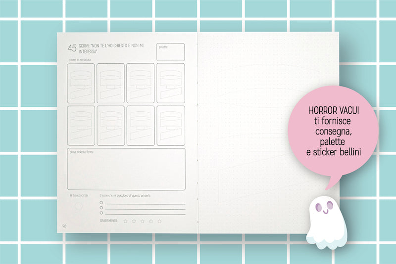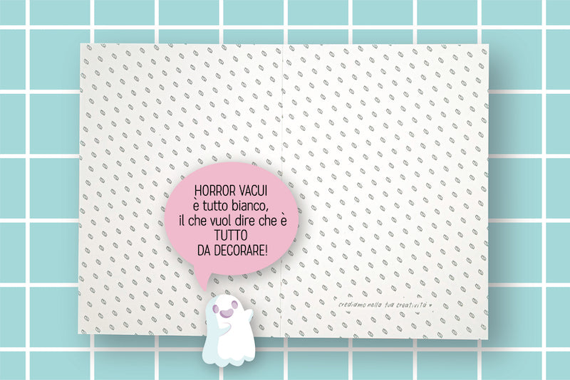 - LO SPAZIO PER LA PALETTE: da scegliere dal foglio di palette colori adesive in dotazione con HORROR VACUI
